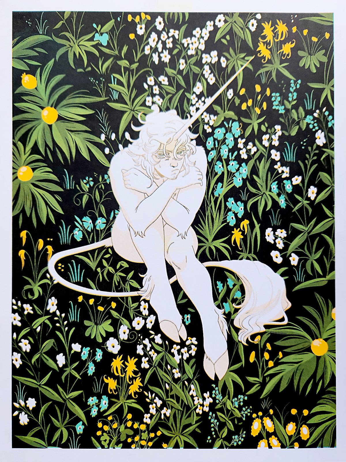 A risograph print of Haelan, the main character of my comic Unicorn, Hunted. Measures 8.5x11 inches.