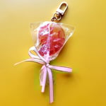 Zelda's secret stone from Tears of the Kingdom, now a lollipop for easy draconification (don't actually eat it, not just because draconification is taboo, but because this is made of acrylic). Measures about 3 inches.