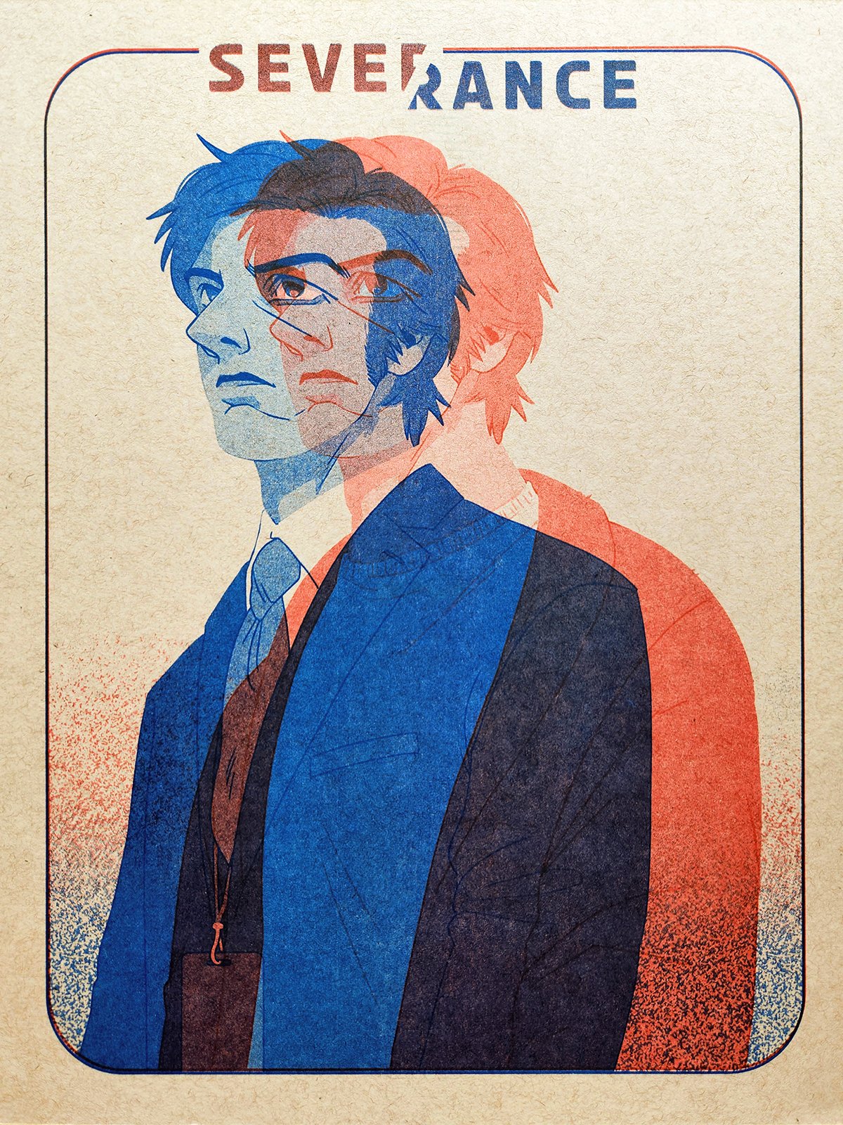 A risograph of Mark Scout from Severance. Measures 8.5x11, printed on light brown "oatmeal" paper.
