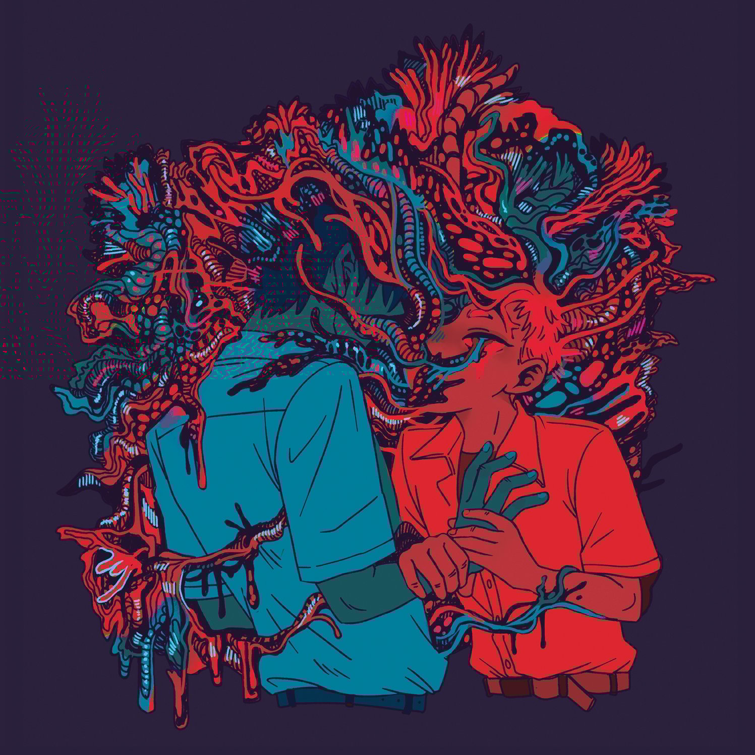 Two matching mini prints of 'Hikaru' and Yoshiki from The Summer Hikaru Died. Each print measures about 5x5 inches and is printed on felt textured cardstock.
